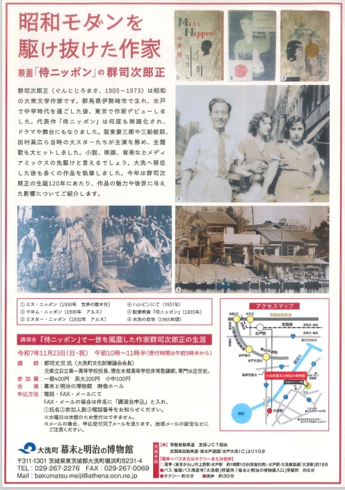 茨城にゆかりのある昭和の大衆文学作家・群司次郎正(ぐんじじろまさ/1905-1973)。代表作「侍ニッポン」は坂東妻三郎や三船敏郎らが主演し何度も映画化されたほか、ドラマや舞台にもなりました。群司次郎正の生誕120年にあたり、作品の魅力や後世に与えた影響について紹介します。