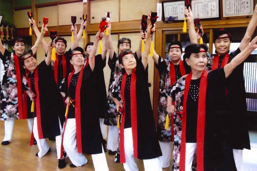 常総市天満町敬老文化祭で踊るために練習しています。平均年齢81歳です。地女連新春の集いに参加するために、週1回水曜日に練習しています。
