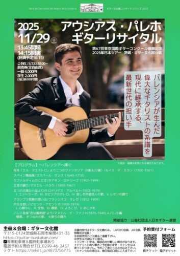 スペイン・バレンシア出身のギタリスト、アウシアス・パレホ(2006年生まれ)の豊かな音楽性と成熟した表現力を併せもつ演奏をぜひお聴きください。