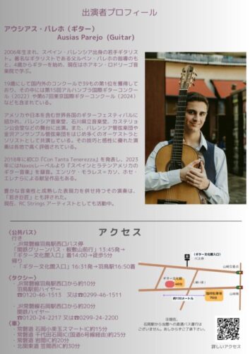 2024年12月に開催された「第67回東京国際ギターコンクール」(公益財団法人日本ギター連盟主催)の優勝記念2025年日本ツアーでの茨城・ギター文化館公演となります。
