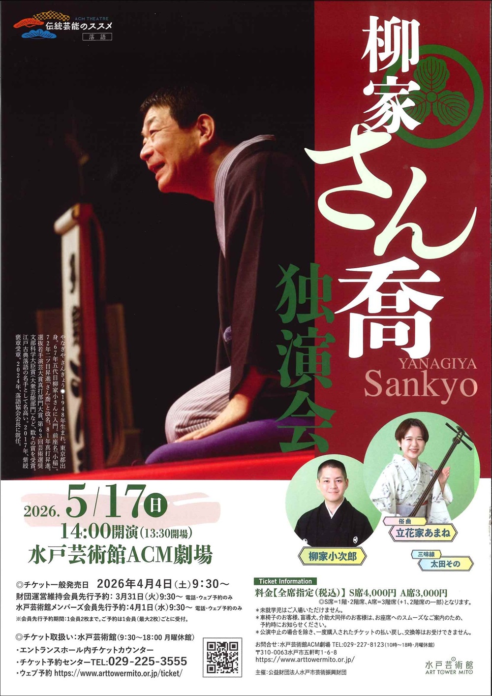 滑稽話から涙を誘う人情話まで、きめ細やかな演出で観客の心を魅了する、名人・柳家さん喬。円熟の話芸をご堪能ください。