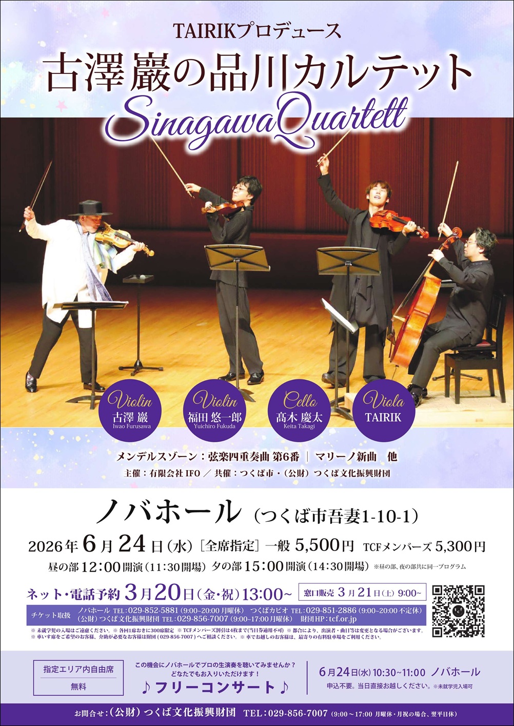 | 問い合わせ | 公益財団法人つくば文化振興財団 TEL:029-856-7007 |